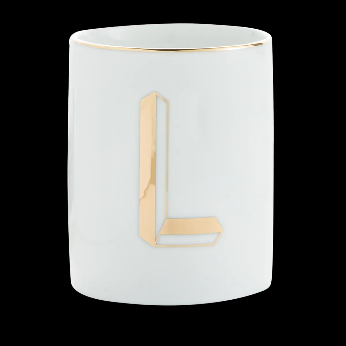 Bicchiere Lettera L In Porcellana Decalco Oro – Adatto Per Lavastoviglie Max 250 Lavaggi – Non Adatto Per Microonde