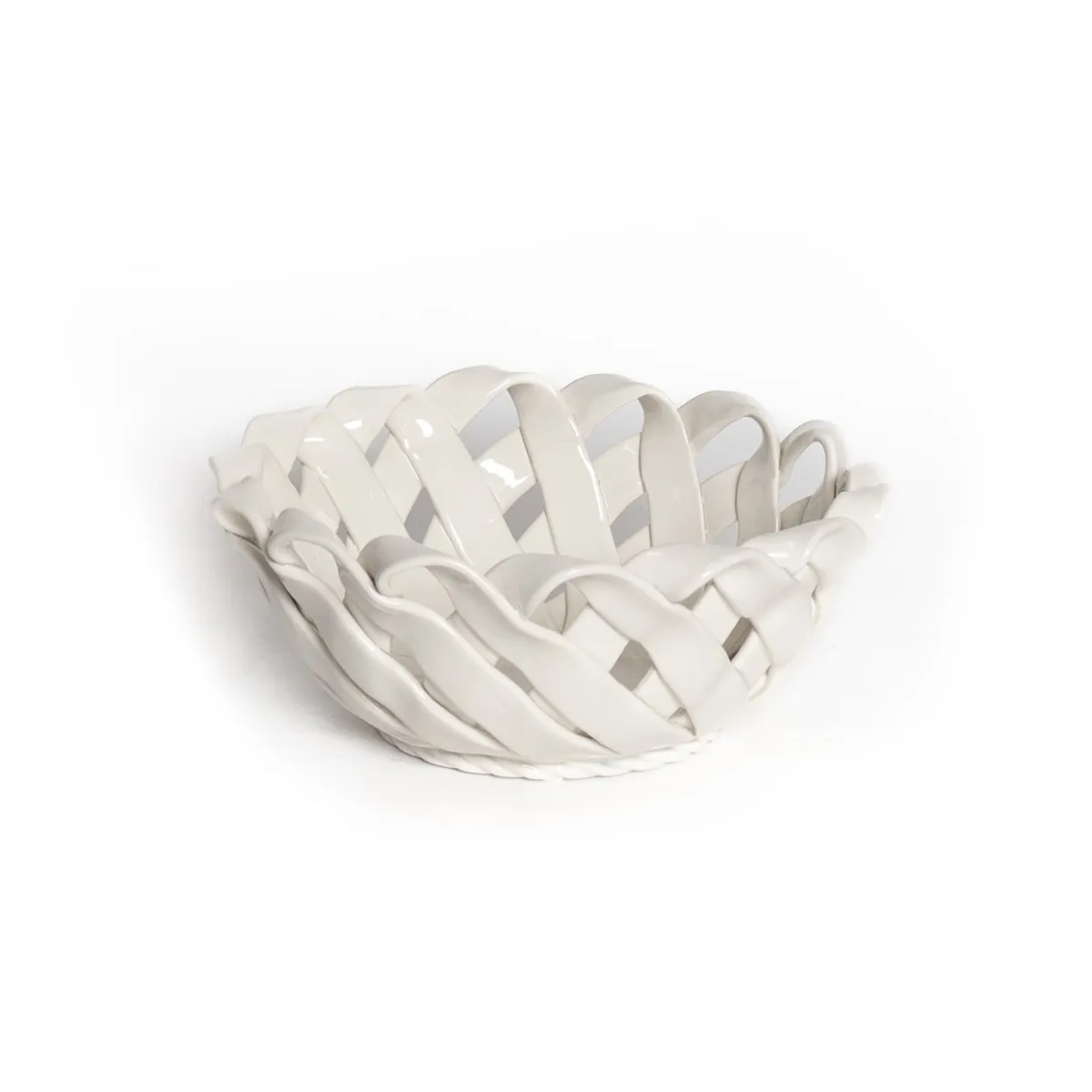 Cestino Rotondo In Ceramica Lavorazione A FettucciaMaterialeCeramicaColoreBianco