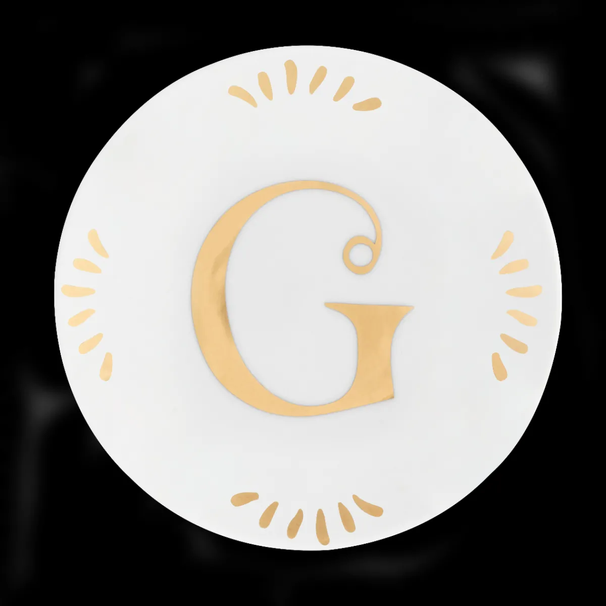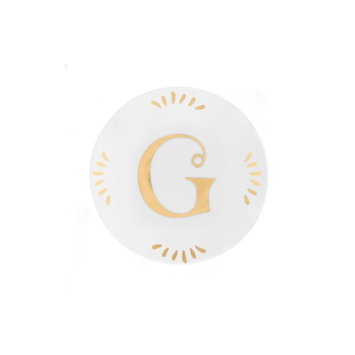 Piattino Lettera G In Porcellana Decalco Oro – Adatto Per Lavastoviglie Max 250 Lavaggi – Non Adatto Per Microonde