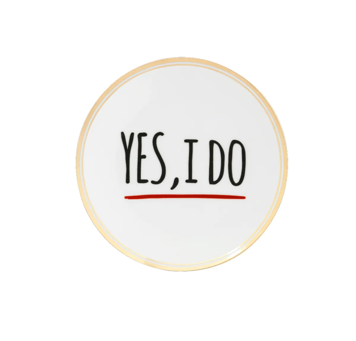 Piatto Yes, I Do In Porcellana Decalco Bordo Oro – Adatto Per Lavastoviglie Max 250 Lavaggi – Non Adatto Per Microonde