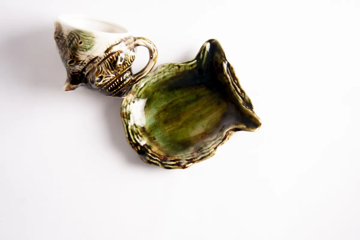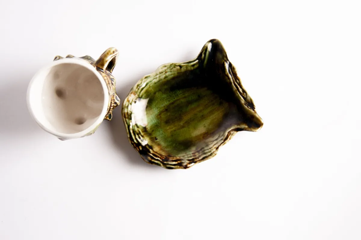 Tris Tazzine Giapponesi Forma Conchiglia, VintageMaterialeCeramicaColoreBianco, Beige, Verde